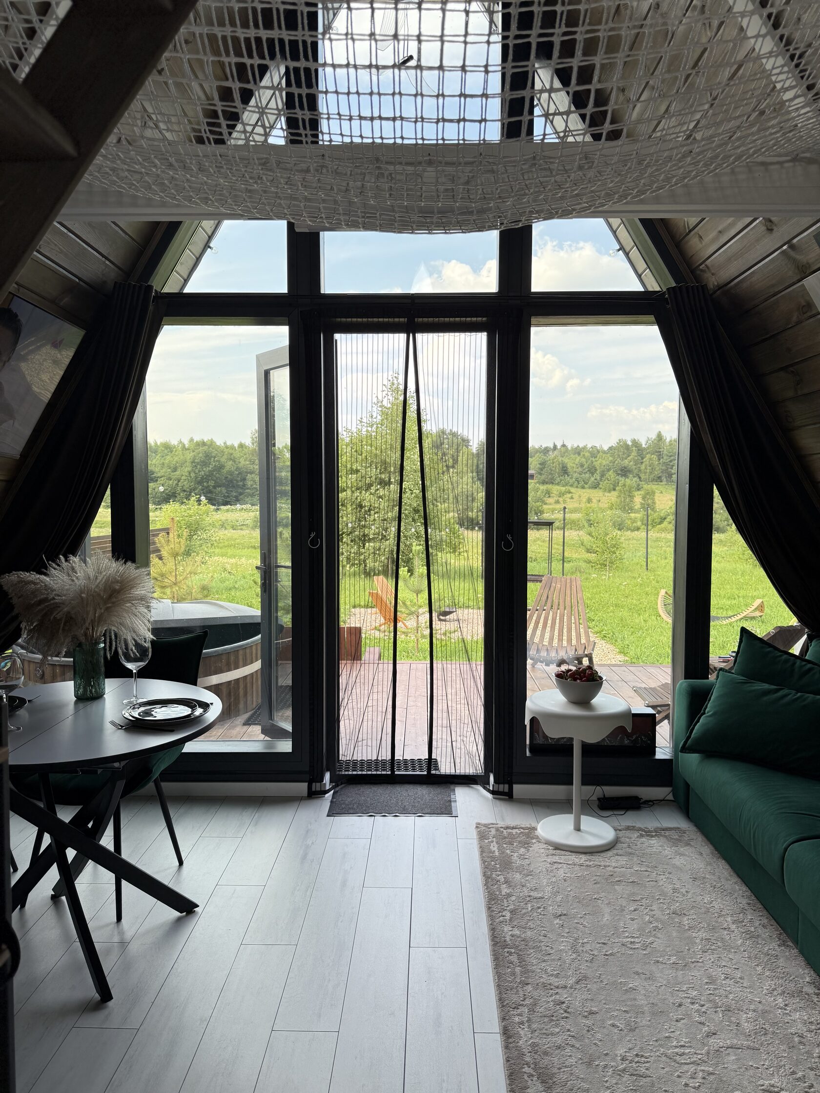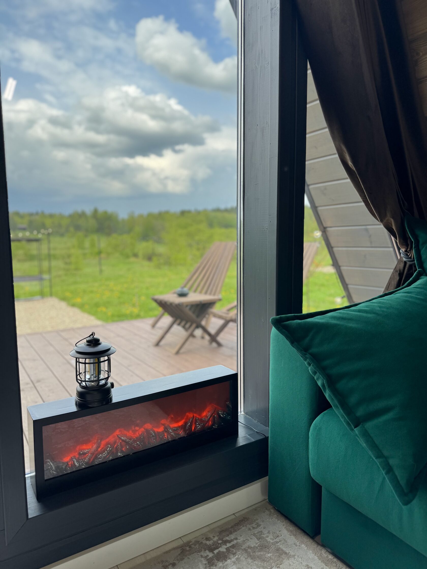 Отдыхали в домике с зелёным диваном – это просто восторг! ????️ Домики новые, просторные, очень уютные и стильно оформленные. Чувствуется, что владельцы продумали всё до мелочей: от удобной планировки до мелких деталей вроде средства от комаров для собак. Территория ухоженная, природа вокруг замечательная, воздух чистейший. Отличное место, чтобы перезагрузиться и отдохнуть от городской суеты.